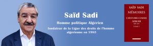 Saïd Sadi est un homme politique et écrivain algérien. Il a milité dès sa jeunesse pour la langue berbère et les Droits de l’Homme, ce qui lui a valu plusieurs emprisonnements. Il a fondé en 1989 le Rassemblement pour la Culture et la Démocratie, parti laïc. Il a été député et candidat à l’élection présidentiel. Il a écrit ses Mémoires en 5 tomes dont le dernier est L’Histoire comme miroir en 2025.
